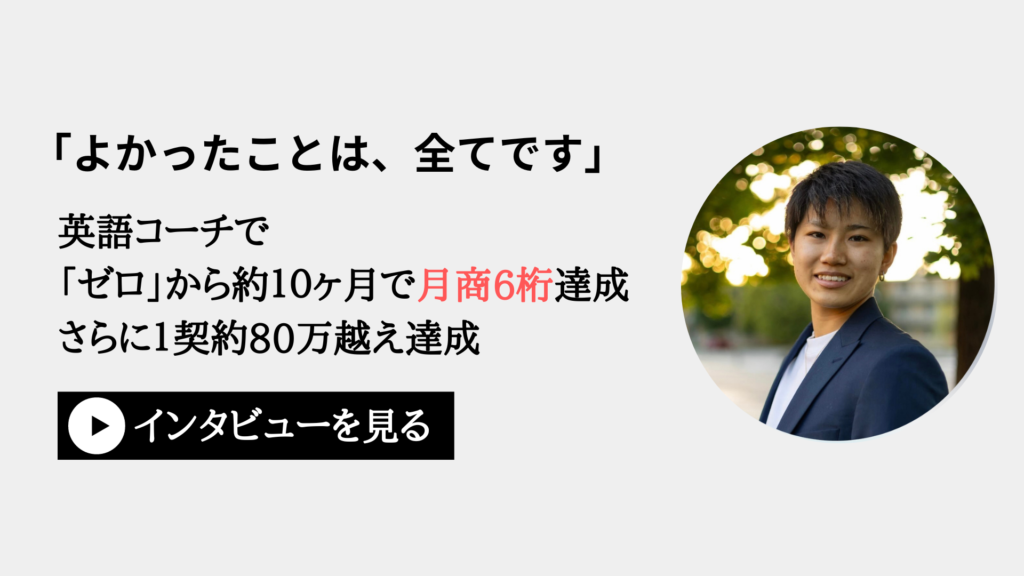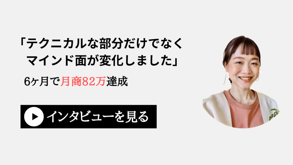サポートを受ける前は体験コーチングの何千円とかの売り上げでしたが、サポートを受け始めて5、6ヶ月で月商82万を達成することができました。