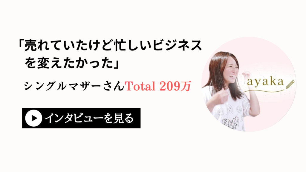 サポートを受けて半年間でtotal 209万の売上を達成できました。